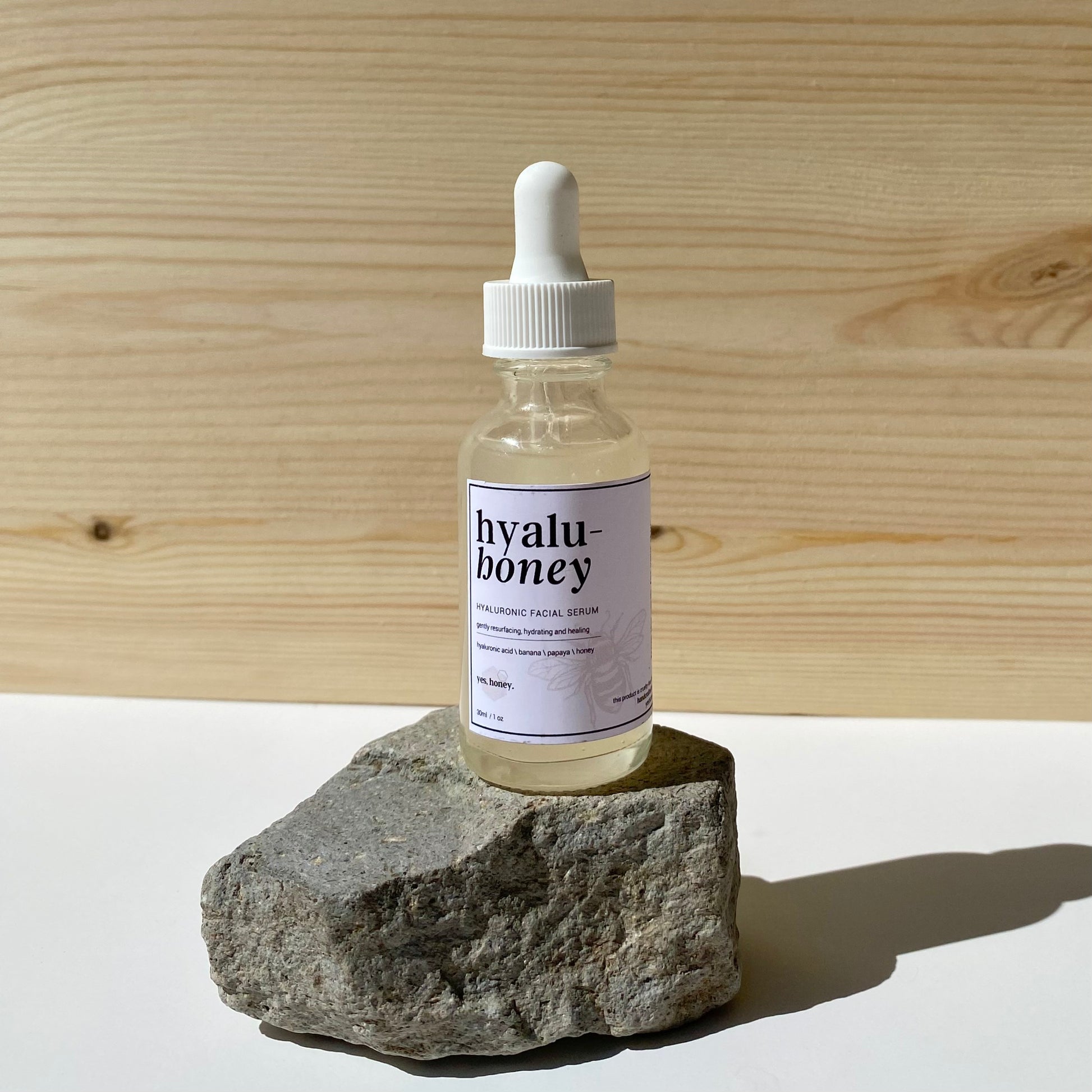 Hyalu-honey [“hi-la-honey”], a gentle, yet effective sweet serum designed to resurface, hydrate and heal harmoniously.